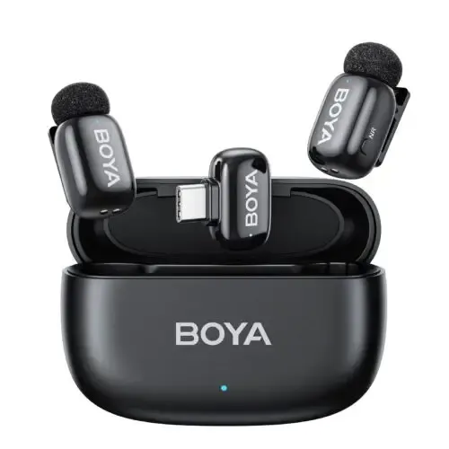 The BOYA Mini 15 Dual Wireless Microphone System is designed for creators, vloggers, and mobile journalists who need high-quality audio in a compact and flexible form. Featuring two ultra-mini 5-gram transmitters and a charging receiver case, this kit ensures dual-person recording with seamless plug-and-play operation. Its discreet lavalier design makes it perfect for interviews, live streaming, and mobile content creation without sacrificing audio clarity or mobility.